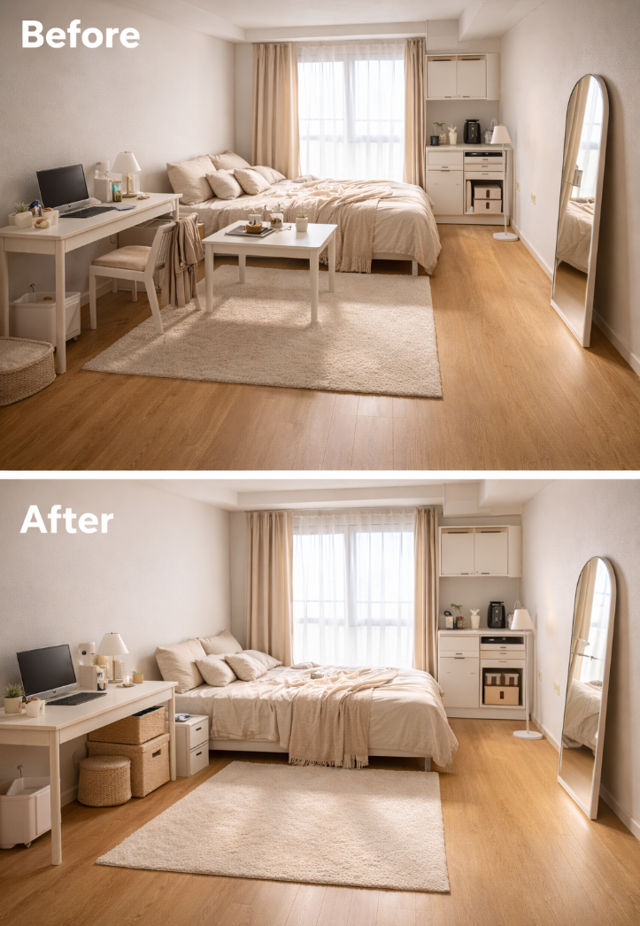 직접 해보니 작은 방은 꾸미는 기술보다도 시야를 막지 않고, 동선을 방해하지 않는 배치가 훨씬 중요했습니다. 지금 방이 답답하게 느껴진다면 새로운 가구를 들이기 전에, 먼저 배치 습관부터 점검해보는 걸 추천합니다.
